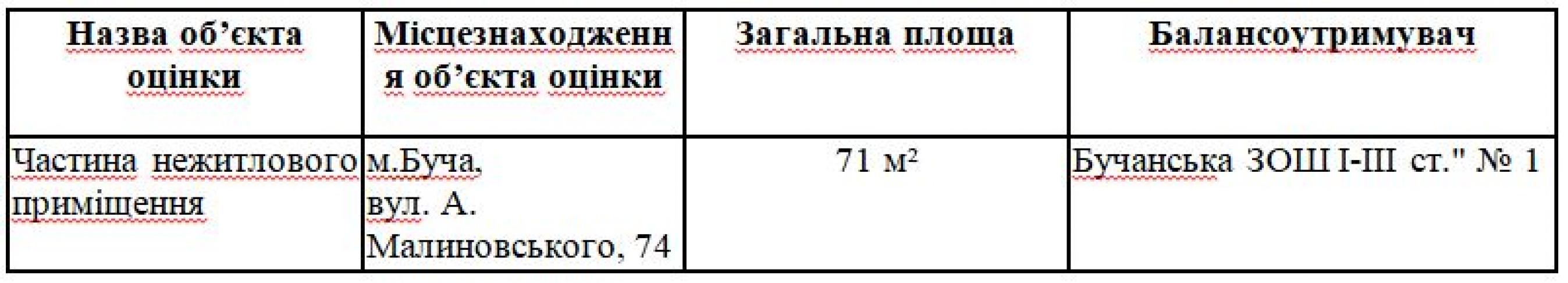 11.10.2018 року о 10 год. 00 хв. в приміщенні Бучанської міської ради, що знаходиться за адресою: м. Буча, вул. Енергетиків, 12 буде проводитися конкурсний відбір суб’єктів оціночної діяльності на проведення експертної оцінки комунального майна наступного нежитлового приміщенння: