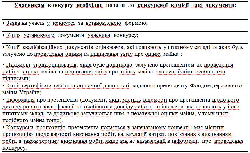 Конкурсну документацію слід подавати за чотири робочі дні до дати проведення конкурсу (включно) до відділу економіки Бучанської міської ради, телефон для довідок (045 97) 48-392.