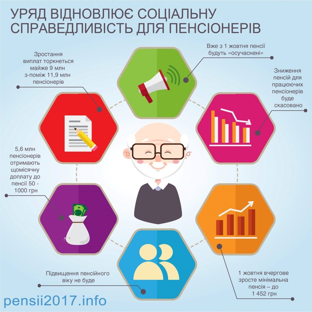 З 1 жовтня 2017 року всі пенсії незалежно від року призначення будуть перераховані за єдиними правилами за матеріалами пенсійних справ. При перерахунку буде використовуватись: єдиний показник середньої зарплати за останні 3 роки (2014-2016) у розмірі 3 764,4 грн; оновлений показник прожиткового мінімуму для непрацездатних громадян на рівні 1452 грн. Всі перерахунки пенсій будуть зроблені без звернень пенсіонерів. Підвищення пенсій не носить інфляційний характер, тому не може призвести до підвищення цін.