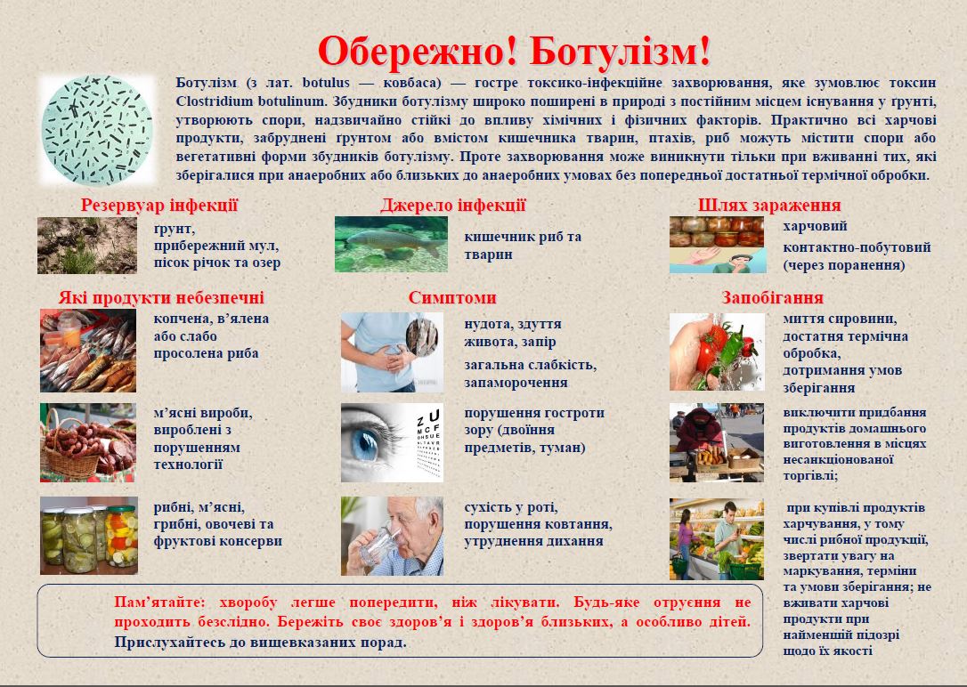 Захворювання пов’язані із вживанням в’яленої річкової риби, а також м’ясних консервів, виготовлених в домашніх умовах.