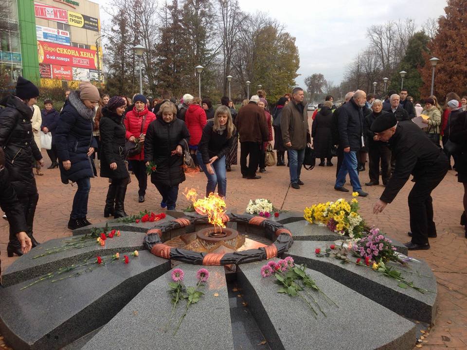 Площа Слави у цей день чекає з самого ранку на тих, хто приходить , аби вклонитися памя’ті і мужності загиблих , разом сказати рішуче «Ні- війні!».