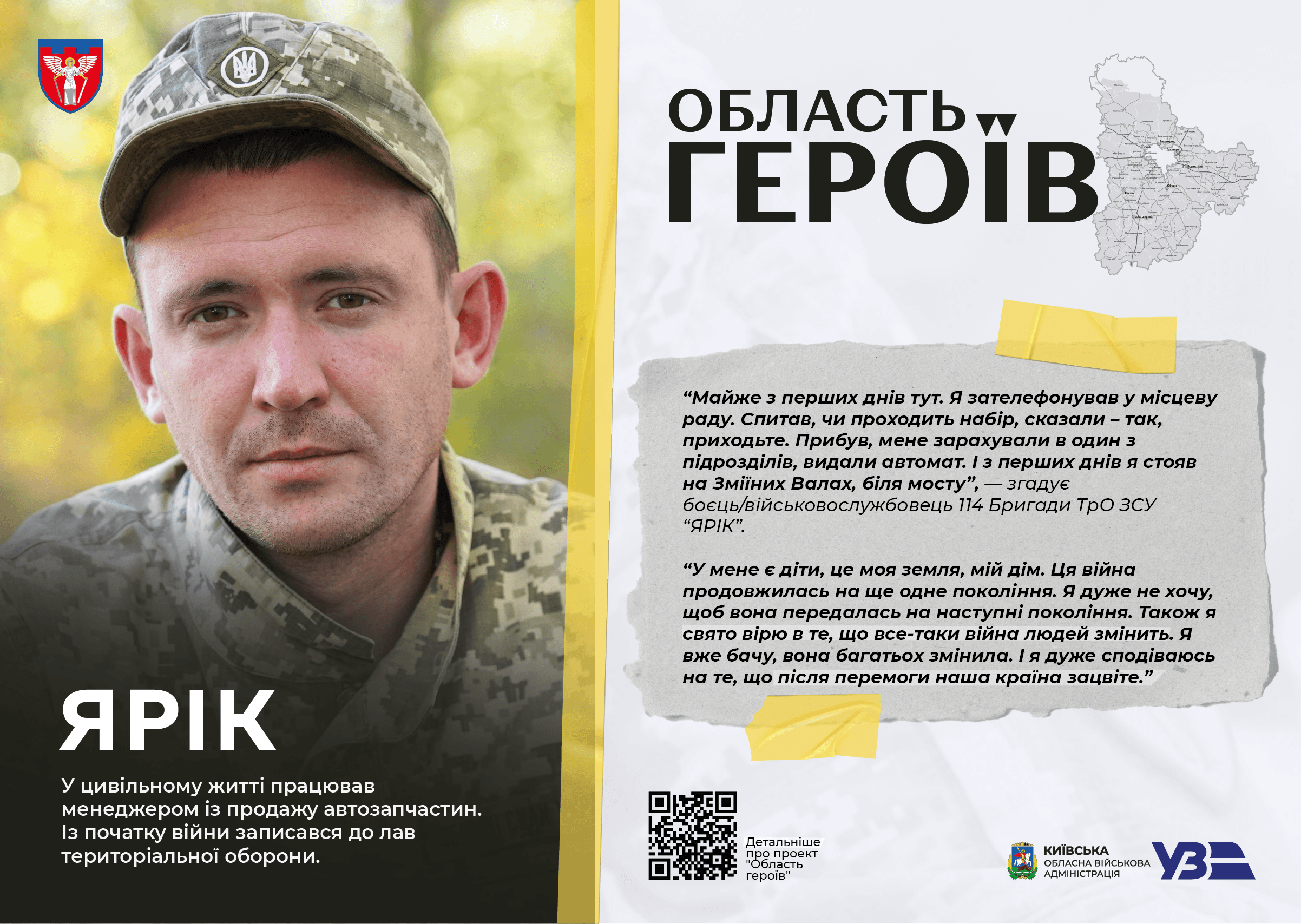 Метою фотопроекту є підтримка та популяризація місцевих героїв Київщини, що брали участь в обороні регіону від російської навали.