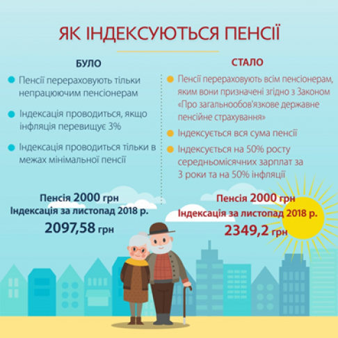 За новими правилами при індексації буде враховуватися 50% інфляції і 50% росту середньої зарплати по країні за останні три роки. Таким чином буде ліквідовано ганебну практику нарощування розриву між розмірами пенсій в залежності від року їх призначення. Індексуватиметься вся сума, яку отримує пенсіонер. Відтак, пенсії зростатимуть швидшими темпами. Працює пенсіонер чи ні жодним чином не впливатиме на проведення індексації. Тобто пенсії індексуватимуть всім.