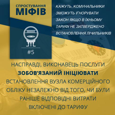 2 серпня 2017 року набрав чинності Закон України “Про комерційний облік теплової енергії та водопостачання”. Це - один із пакету законодавчих актів, що мають на меті привести ринок надання житлово-комунальних послуг в Україні у цивілізований стан, сприяти енергозбереженню, а відтак – і енергетичній незалежності нашої держави. Тим не менше, одразу після оприлюднення нового закону в мережі Інтернет навколо нього з’явилося чимало міфів. Ми обрали кілька найпоширеніших і нижче розглянемо, як ситуація виглядає насправді.