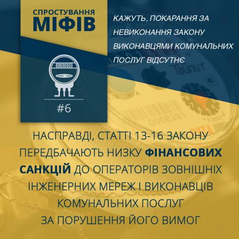 Ні, це не так. У дійсності, статті 13-16 закону передбачають застосування низки фінансових санкцій до операторів зовнішніх інженерних мереж і виконавців комунальних послуг за порушення вимог закону.