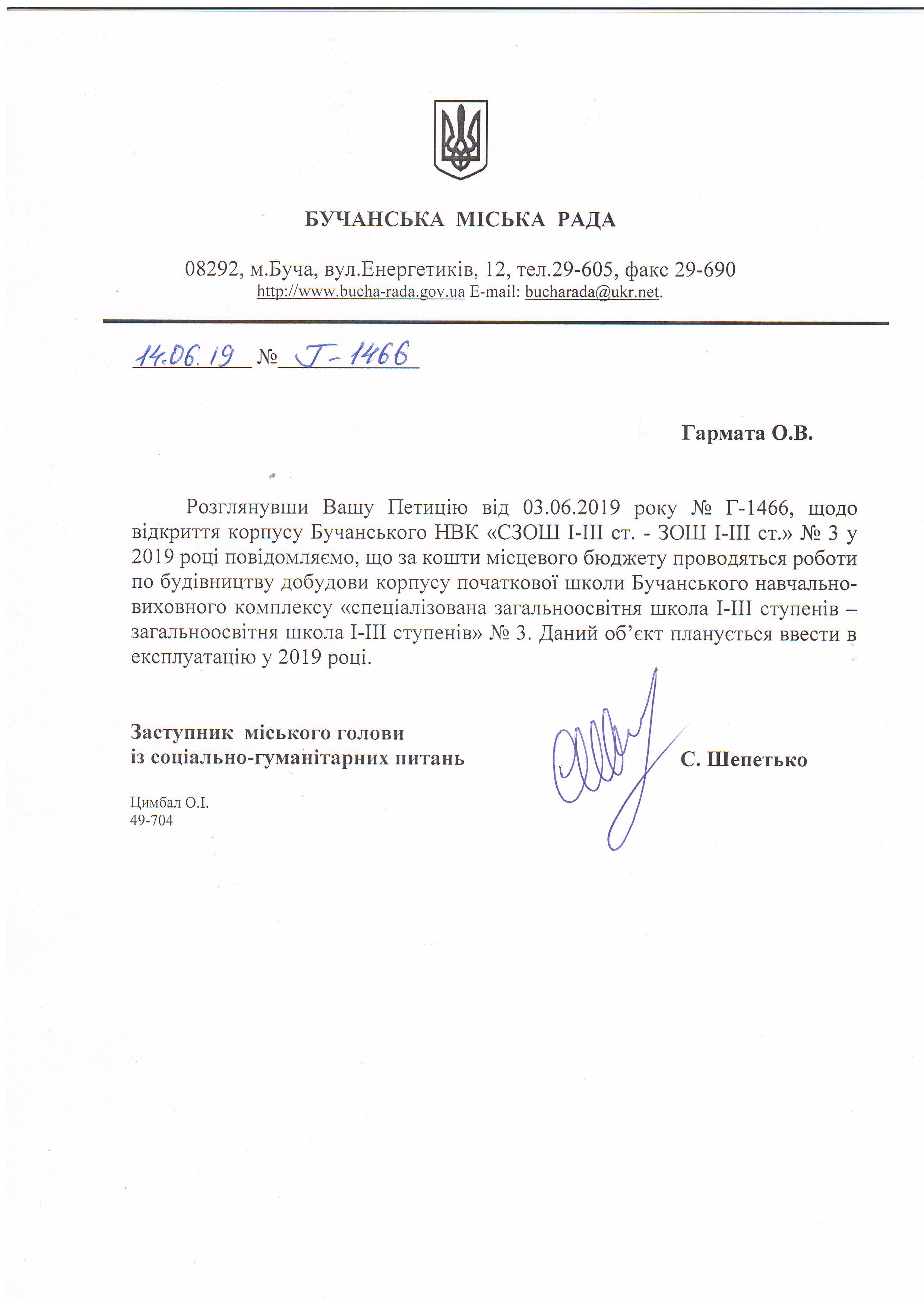 Петиція "Відкриття корпусу школи №3 в 2019 навчальному році" розглянута. Відповідь у прикріпленому файлі.