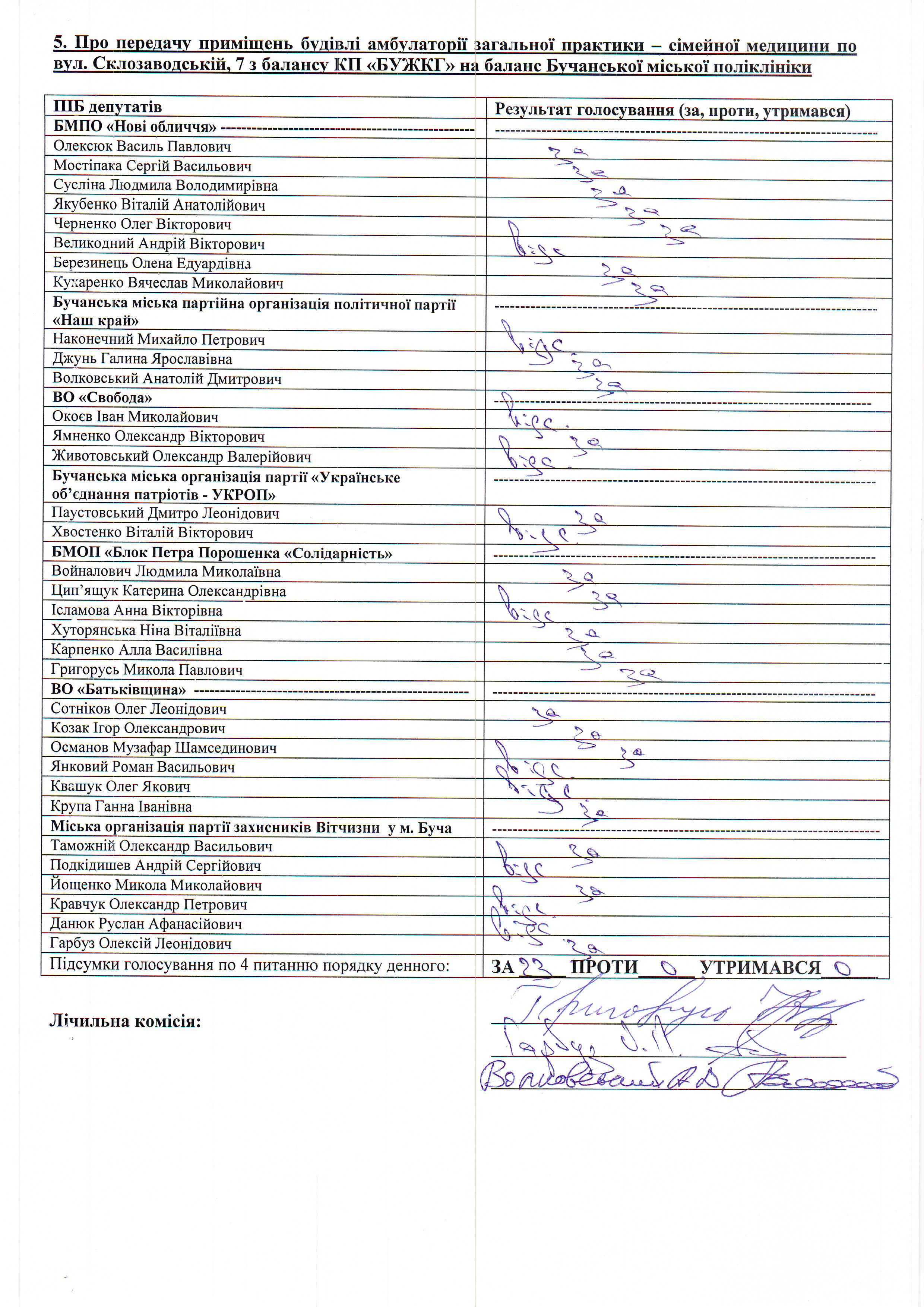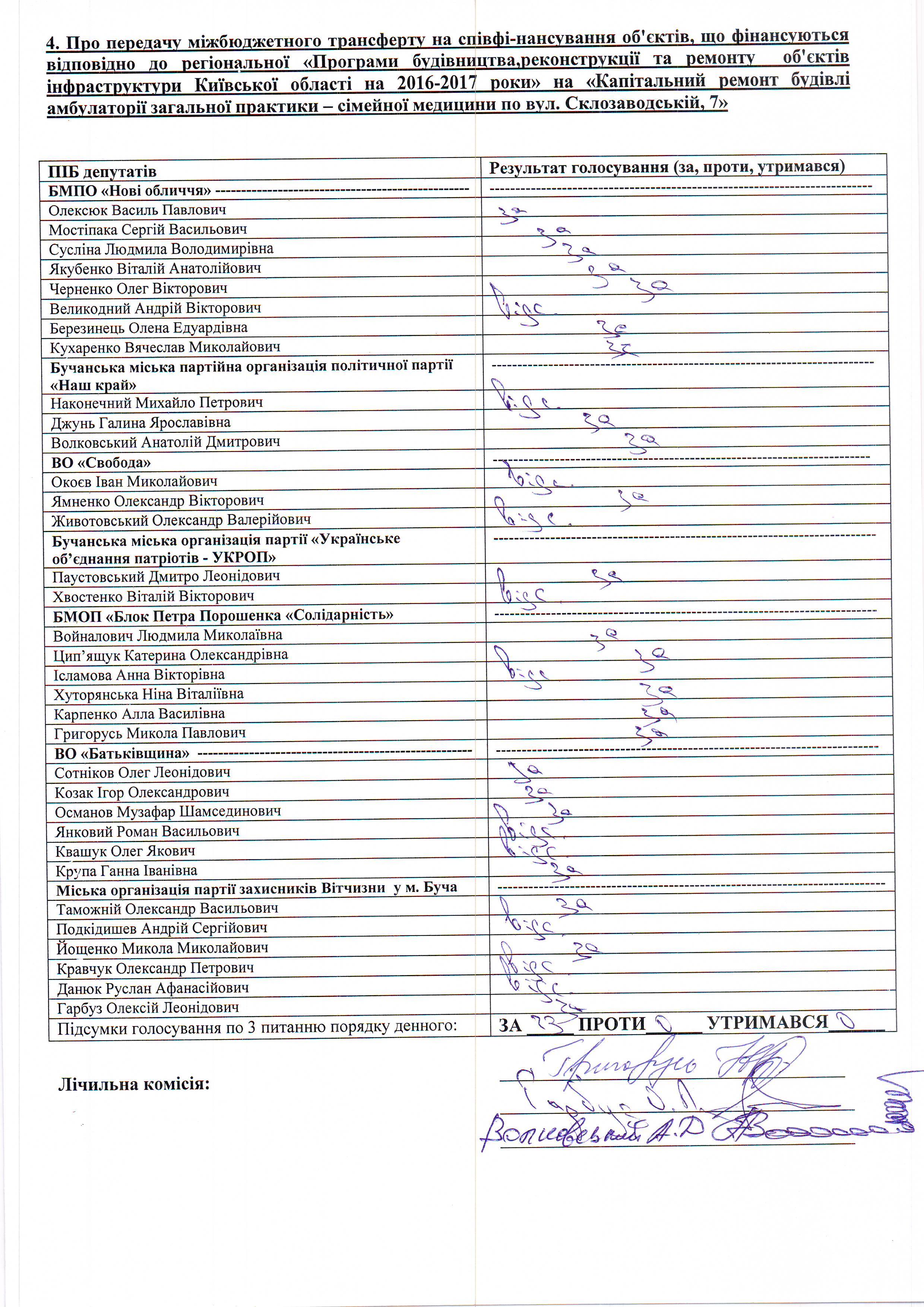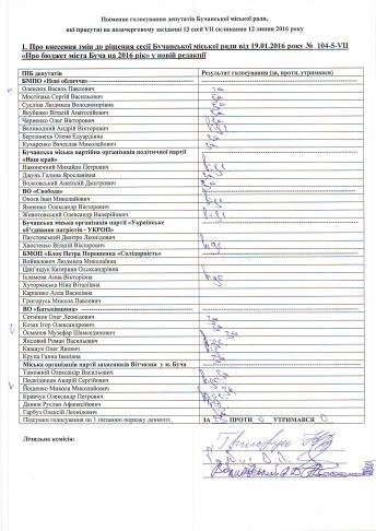 Головна > Нормативні документи > Рішення Бучанської міської ради > Підсумки поіменного голосування депутатів Бучанської міської ради 13 (позачергової) сесії VII скликання від 12.07.2016 р.