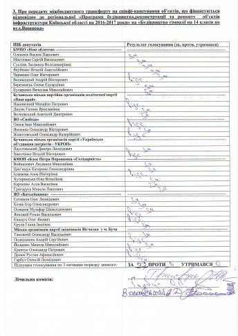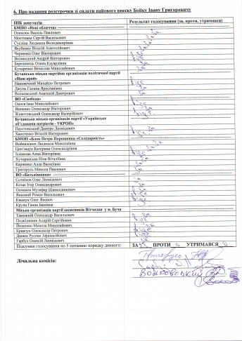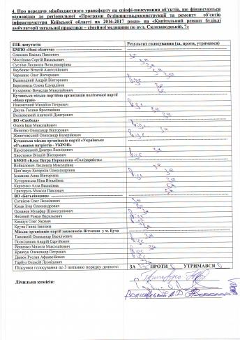 Підсумки поіменного голосування депутатів Бучанської міської ради 13 (позачергової) сесії VII скликання від 12.07.2016 р.