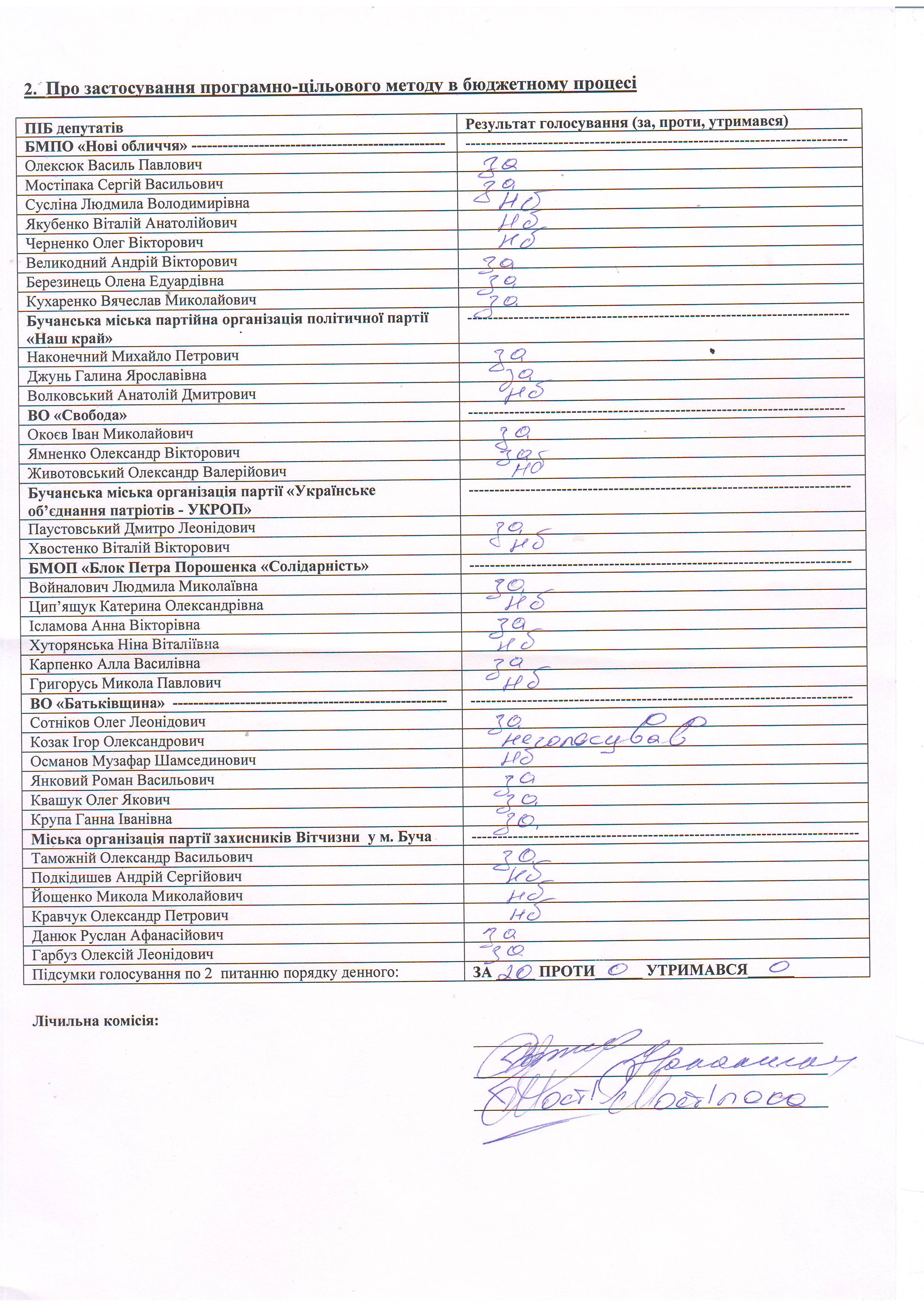 Головна > Нормативні документи > Рішення Бучанської міської ради > Підсумки поіменного голосування депутатів Бучанської міської ради 22 (позачергова) сесія VII скликання від 15.12.2016 р.